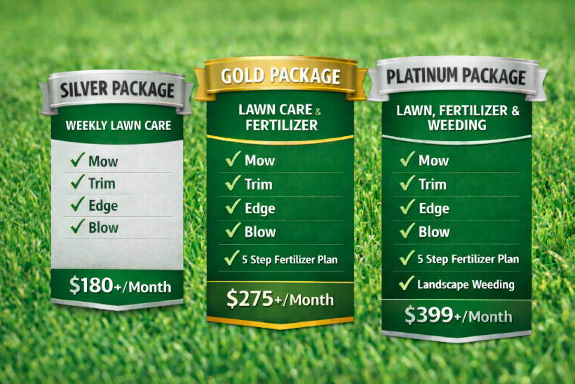 We provide weekly lawn care services! You can expect professional lawn maintenance week after week. We provide grass cutting, trimming, edging, and debris removal services each time we service your property! View each of the packages we offer below: